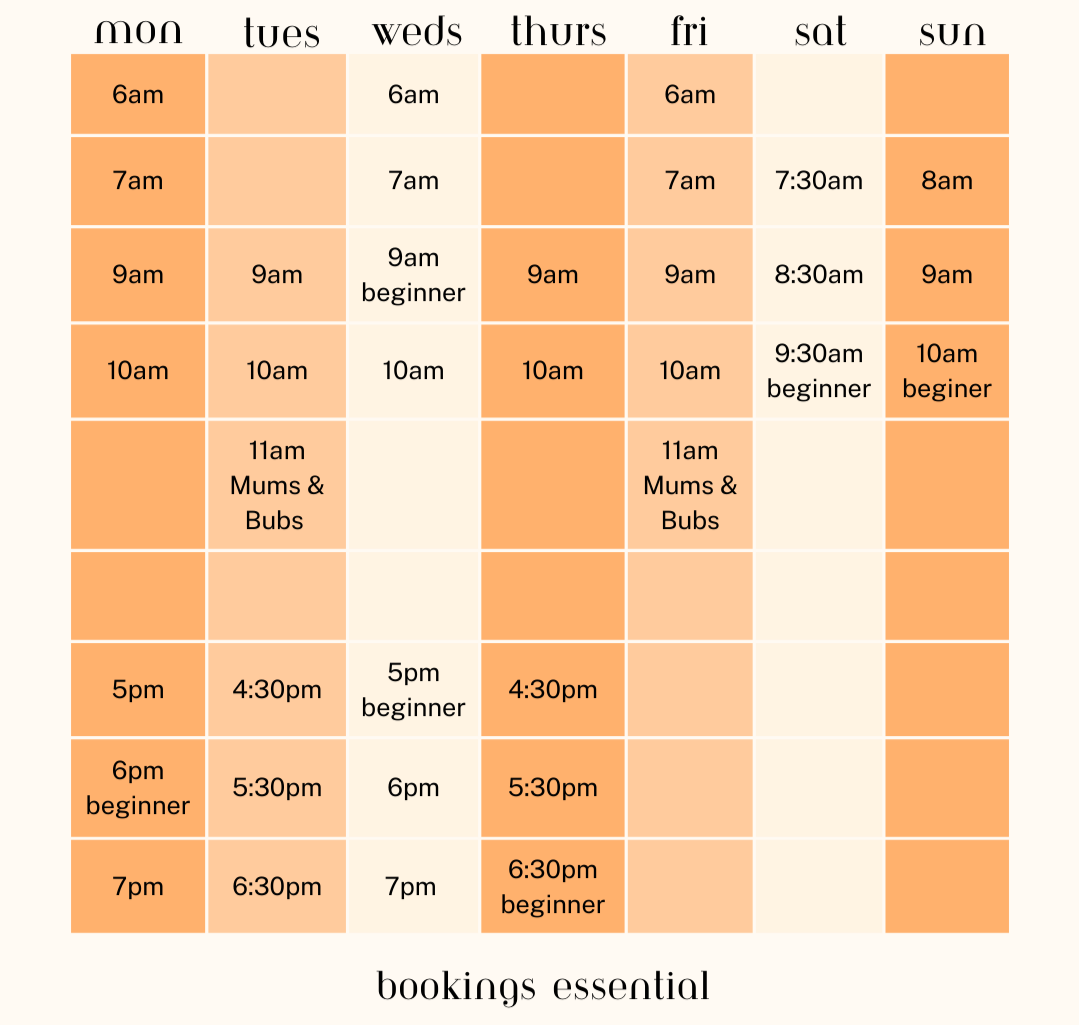Please bring a play mat, or keep baby in their capsule, to ensure their safety in the studio. We have a kettle and fridge if you need to store or make any food or bottles while you attend your class.