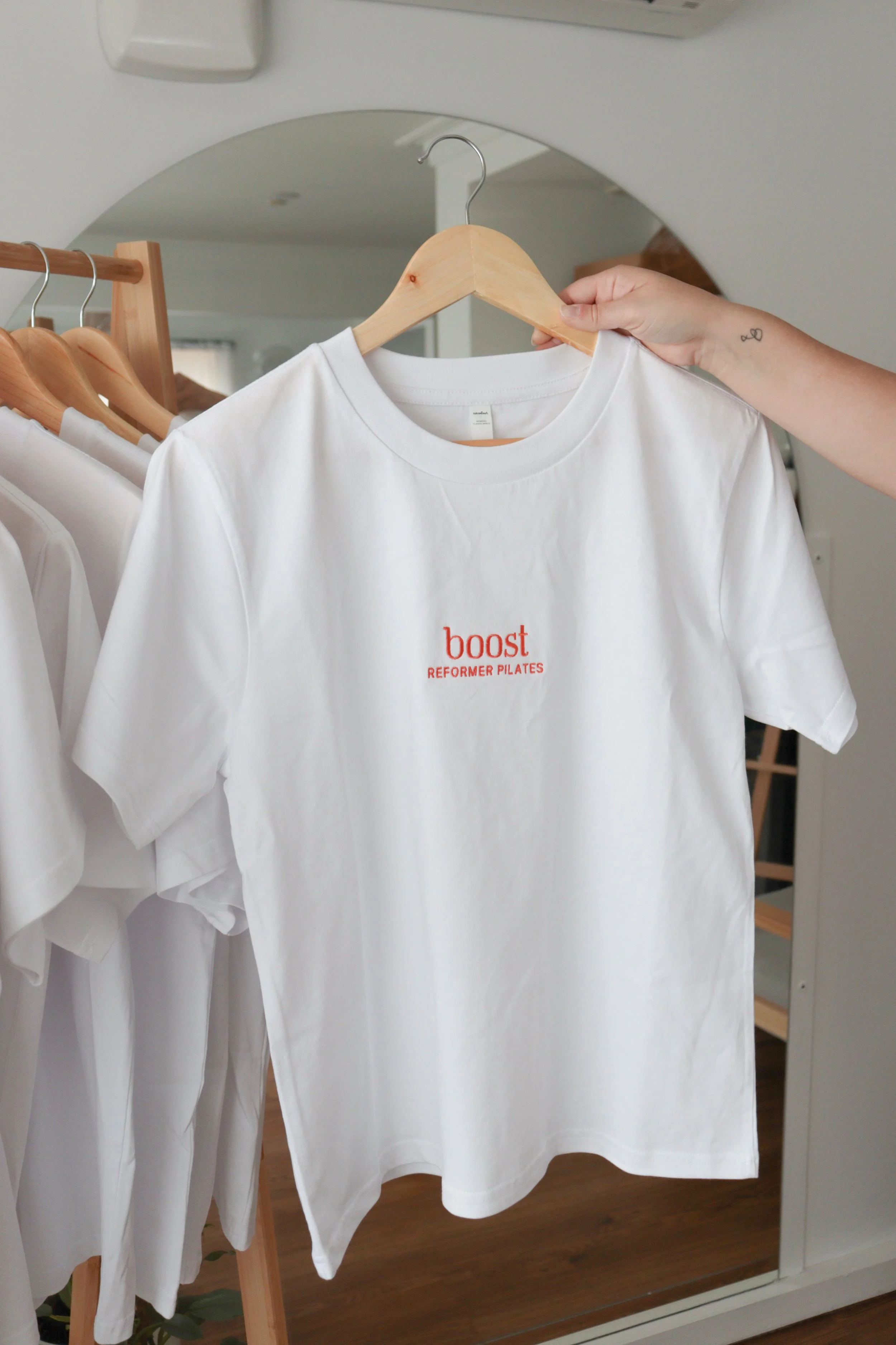 Boost Classic Tees feature our logo embroidered on AScolour t-shirts. Currently available in white. Sizes small, medium, and large. Pick up in studio only.